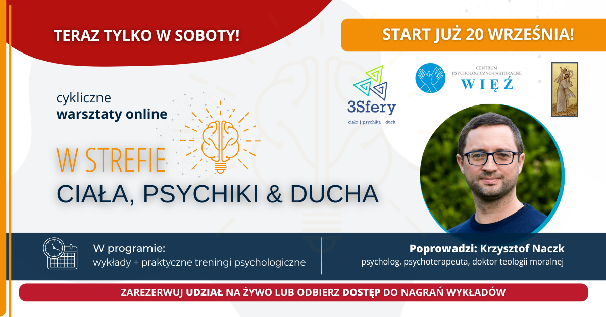 Zapraszamy na kolejną edycję wyjątkowego cyklu warsztatów psychologicznych online “W STREFIE CIAŁA, PSYCHIKI I DUCHA”, stworzonych z myślą o osobach poszukujących głębszego rozumienia siebie, swoich emocji, relacji i duchowości. Każde spotkanie to nie tylko przekaz wiedzy, ale również bezpieczna przestrzeń do praktyki, refleksji i odkrywania nowych perspektyw w codziennym życiu.